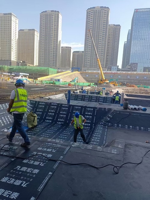 為確保蘭州環(huán)球港的高品質(zhì)、高質(zhì)量建設(shè),在建筑防水施工中采用了九鼎宏泰成熟產(chǎn)品SBS改性瀝青防水卷材,九鼎宏泰工程公司以嚴(yán)格的標(biāo)準(zhǔn)化施工參與建設(shè),在細(xì)節(jié)之處下功夫,基坑搭接處整齊有序。